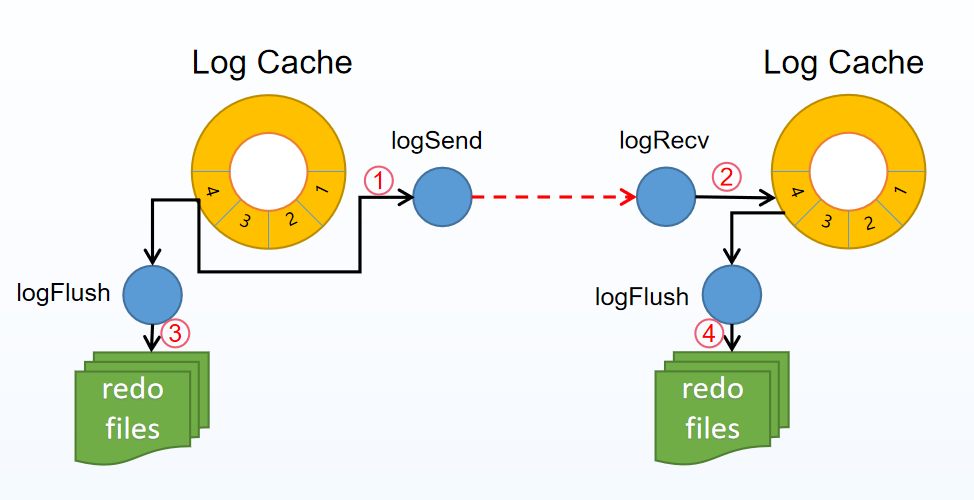 Log Cache:日志缓存。主库上Redo日志会首先写入日志缓存,备库收到Redo日志后也会写入日志缓存。