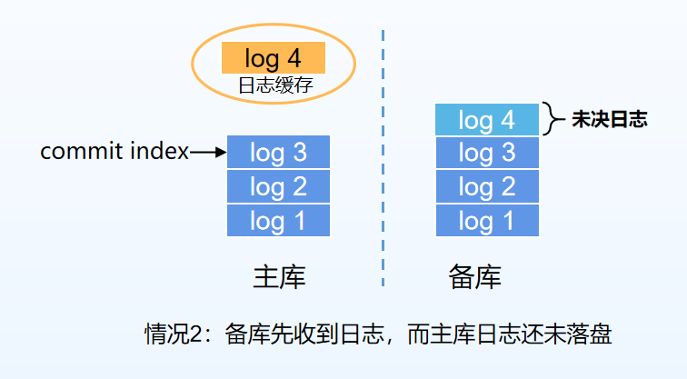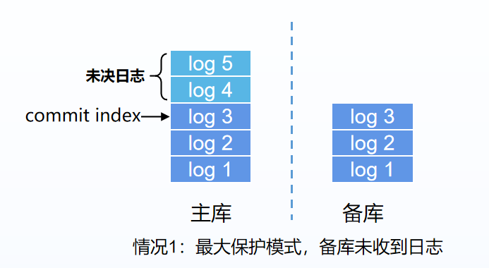 如果日志被主库和所有同步备持久化,则这部分日志不会被回退,这个日志点称为commit index。主库维护commit index识别未决日志,同时主库会将commit index同步给备库。