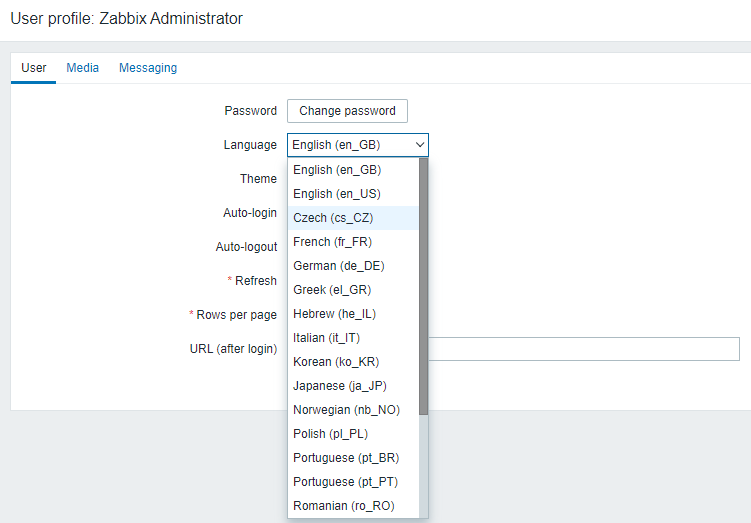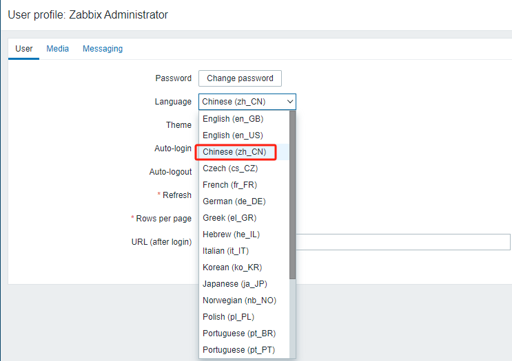在zabbix 5.0版本开始用户菜单更改为左侧栏显示,找到并点击 User Settings,Language 修改语言为 Chinese (zh_CN) 即可。