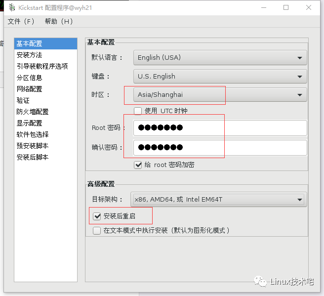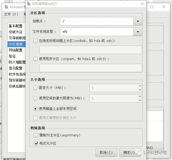 [root@wyh21 ~]# yum install -y system-config-kickstart已安装:system-config-kickstart.noarch 0:2.9.7-1.el7完毕![root@wyh21 ~]# system-config-kickstart