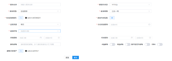 下图是定时运维设置界面,从图中可以看出,定时巡检可以随意指定巡检时间,任意设置起止日期,按需选择所有支持的报表类型和数据库类型。更重要的是可以智能识别相关数据库的运维A岗、B岗,不需要为设置巡检结果收件人而苦恼。