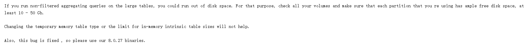 现场同事反馈应用日志中有如下报错The table '/tmp/#sql2b742_48637_738' is full,已影响功能查询。