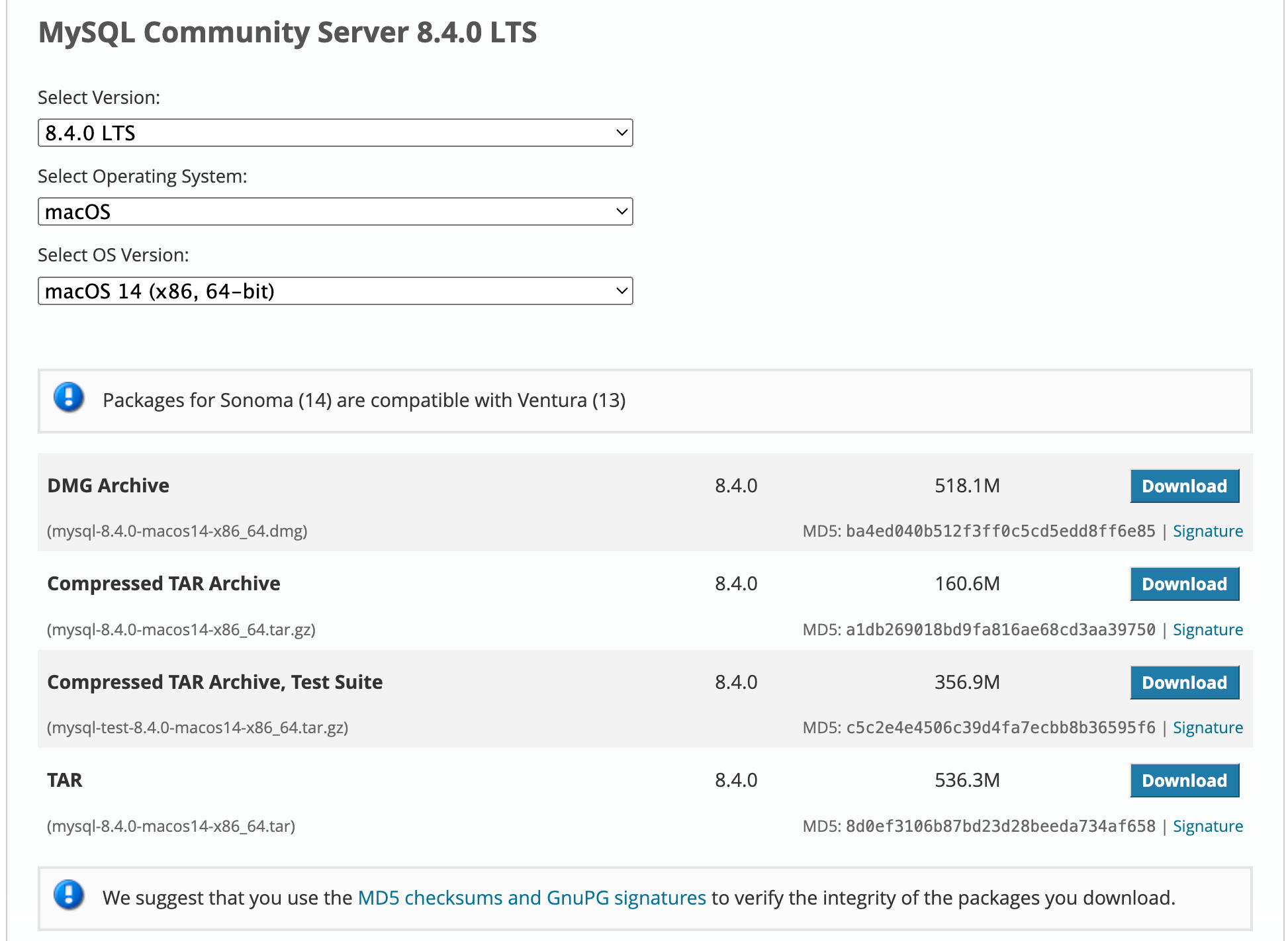 MySQL是甲骨文开发的开源数据库。凭借其成熟的性能、可靠性和易用性,MySQL已成为基于网络的应用程序的领先数据库选择,被包括脸书、推特、YouTube、雅虎在内的知名网络资产使用。想体验新功能的小伙伴可以动手试试了。可以从官方下载地址来获取最新的安装包:https://dev.mysql.com/downloads/mysql/