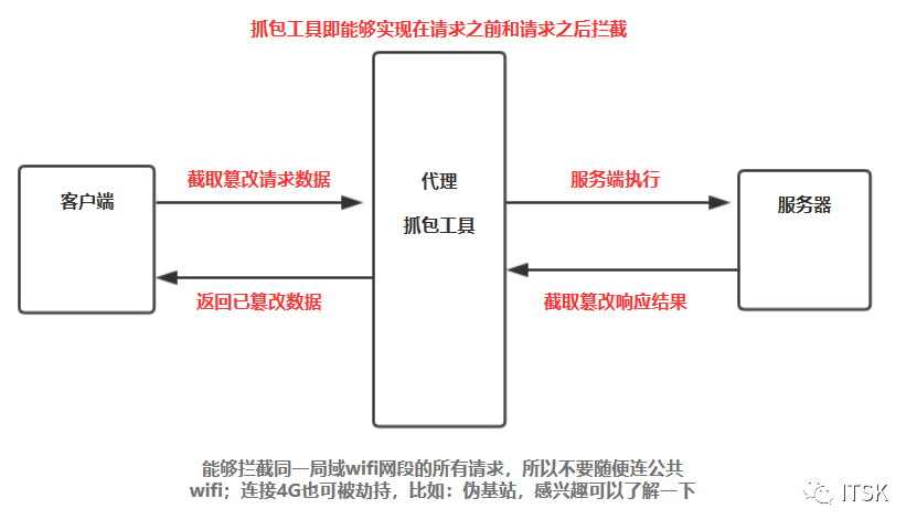 Fiddler是一个抓包工具,以代理web服务器的形式工作,当浏览器访问服务器会形成一个请求,此时,fiddler就处于请求之间,当浏览器发送请求,会先经过fiddler,然后再到服务器;当服务器有返回数据给浏览器显示时,也会先经过fiddler,然后数据才到浏览器中显示,这样一个过程,fiddler就抓取到了请求和响应的整个过程,其原理图如下: