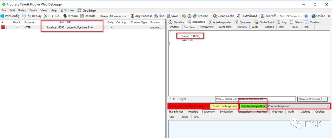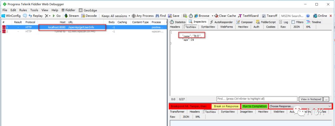 然后对参数进行篡改,这里修改为李四,返回结果如下: