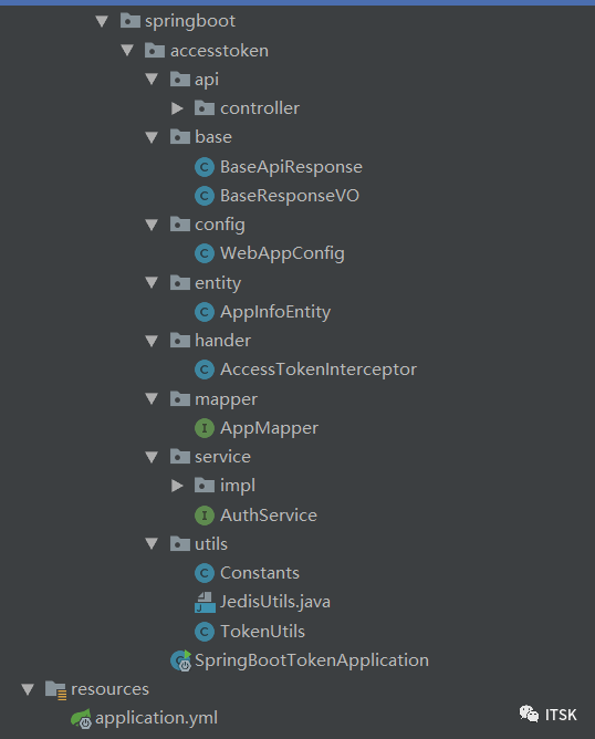 接下来贴出实现的核心代码:该项目基于SpringBoot开发,项目工程结构如下图所示: