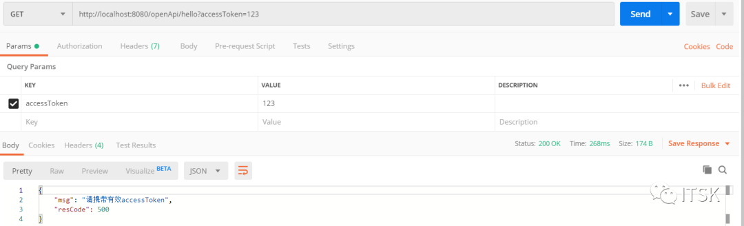 携带无效access_token运行结果如下: