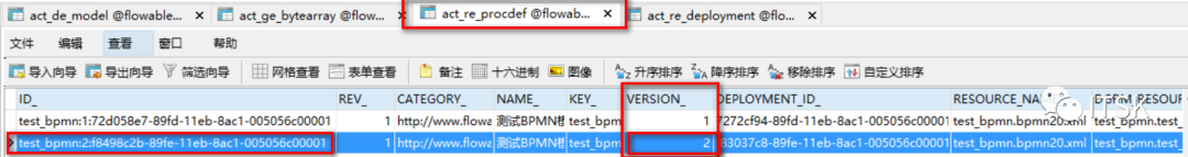 使用同一个模型进行第二次流程部署:可以看到使用同一个模型发布的流程,流程定义中会有版本的概念,已启动的流程还是基于原版本的流程定义继续执行,新启动的流程就会基于最新版本的流程定义进行流转。