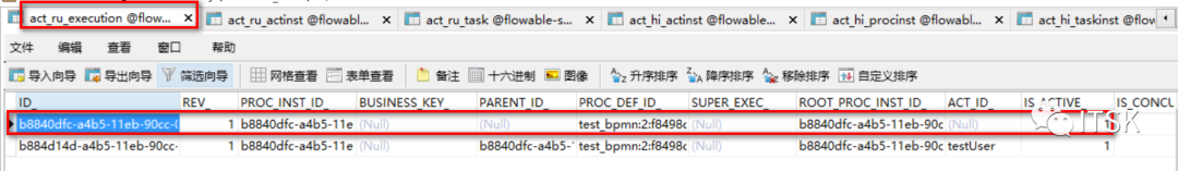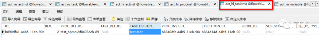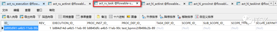 同时删除act_ru_execution表中的记录,同理如还存在后续任务,则只会删除当前任务执行实例,然后新增后续任务的执行实例信息。