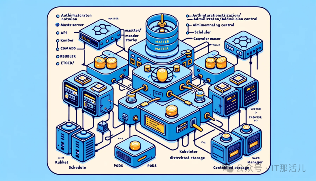 API Server 用于提供API的主要接口,管理和处理集群操作。 etcd 分布式键值存储,用于保存集群的配置信息和状态。 Scheduler 负责监控新创建的Pod,并选择一个节点来运行它们。 Controller Manager 负责管理控制器,确保系统中各种资源的期望状态。