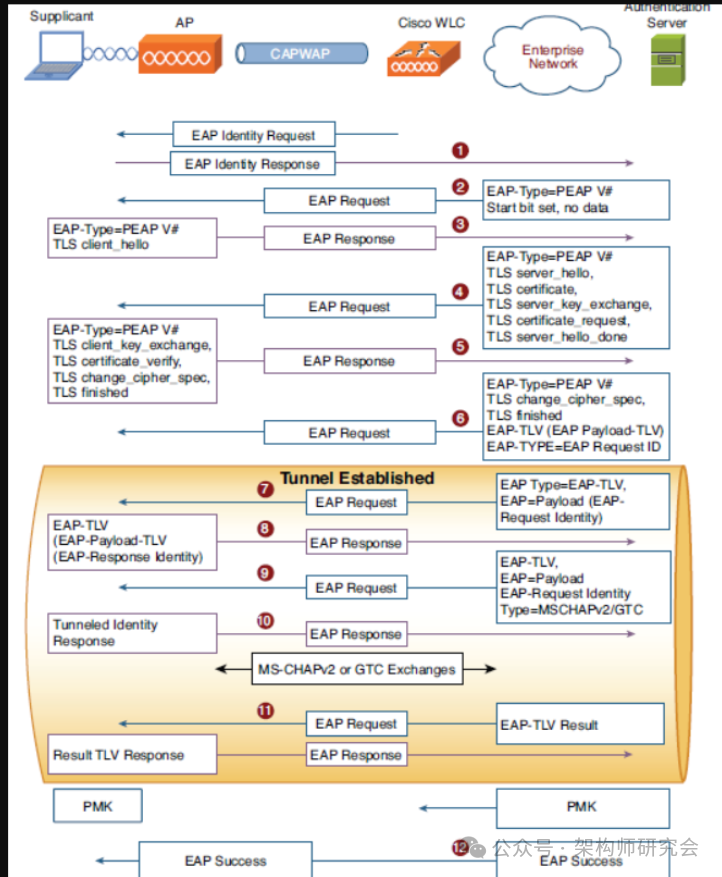 在PEAP中,请求方没有证书,这减少了实现EAP-TLS的管理负担。PEAP有两种口味