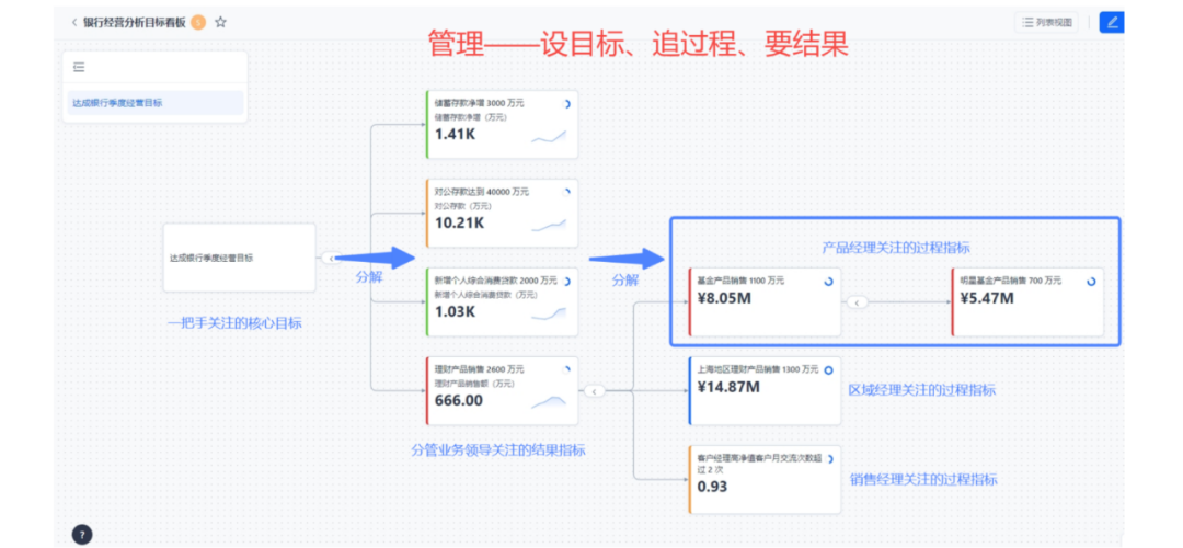 在思维方面,智能数据决策实现的前提还需要企业建立一个清晰的目标管理系统。在 Kyligence AI 解决方案中,数字化 KPI 为导向,AI 进行目标总结,通过建立一个可衡量、可追踪、可执行的北极星目标跟踪体系,企业能够有效地监控和管理各个层面的目标实现情况、自动评估目标执行情况,企业可以将顶层目标拆解为日常可执行的任务,并跟踪每个任务的进展,帮助企业确保每个小目标的明确性和可达成性。这样的分解不仅适用于单个项目,也适用于跨地域、拥有众多门店的大型企业,确保每个门店都能根据其特定情况设定并实现目标。在这个过程中,AI 的应用可以极大地提升目标管理的效率和准确性。