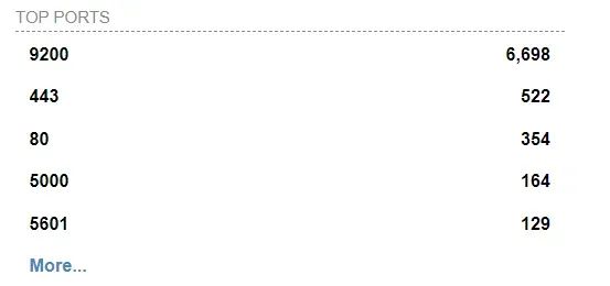 从暴露的端口进行分析,不仅包含默认的 ES、kibana 服务端口,还包括其他管理工具的端口。其中 ES 的默认端口占比最高,高达 75% 。