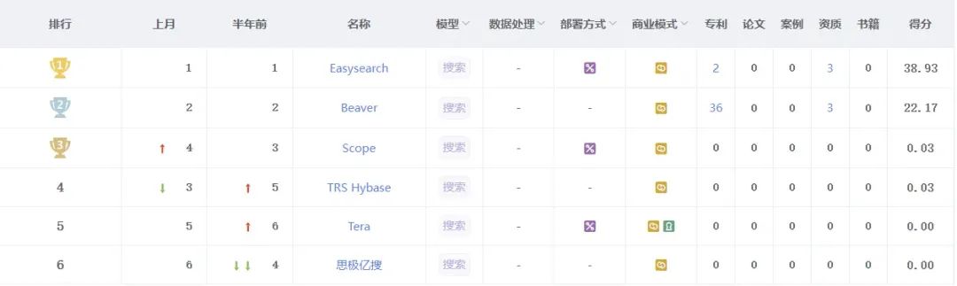 在国内墨天轮数据库排行榜中,Easysearch 长期占据搜索型数据库榜首。