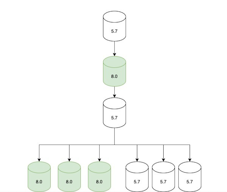 如果只读流量经过8.0的验证,没问题,就调整复制拓扑为下图形式