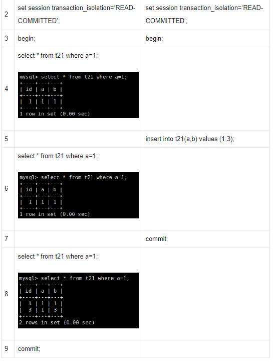 在读已提交隔离级别下,同一个事务前后两次相同的查询,可能结果会不一样。也就出现了幻读(在一个事务里面,按相同的查询条件重新读取以前检索过的数据,却发现其他事务插入了满足查询条件的新数据)
