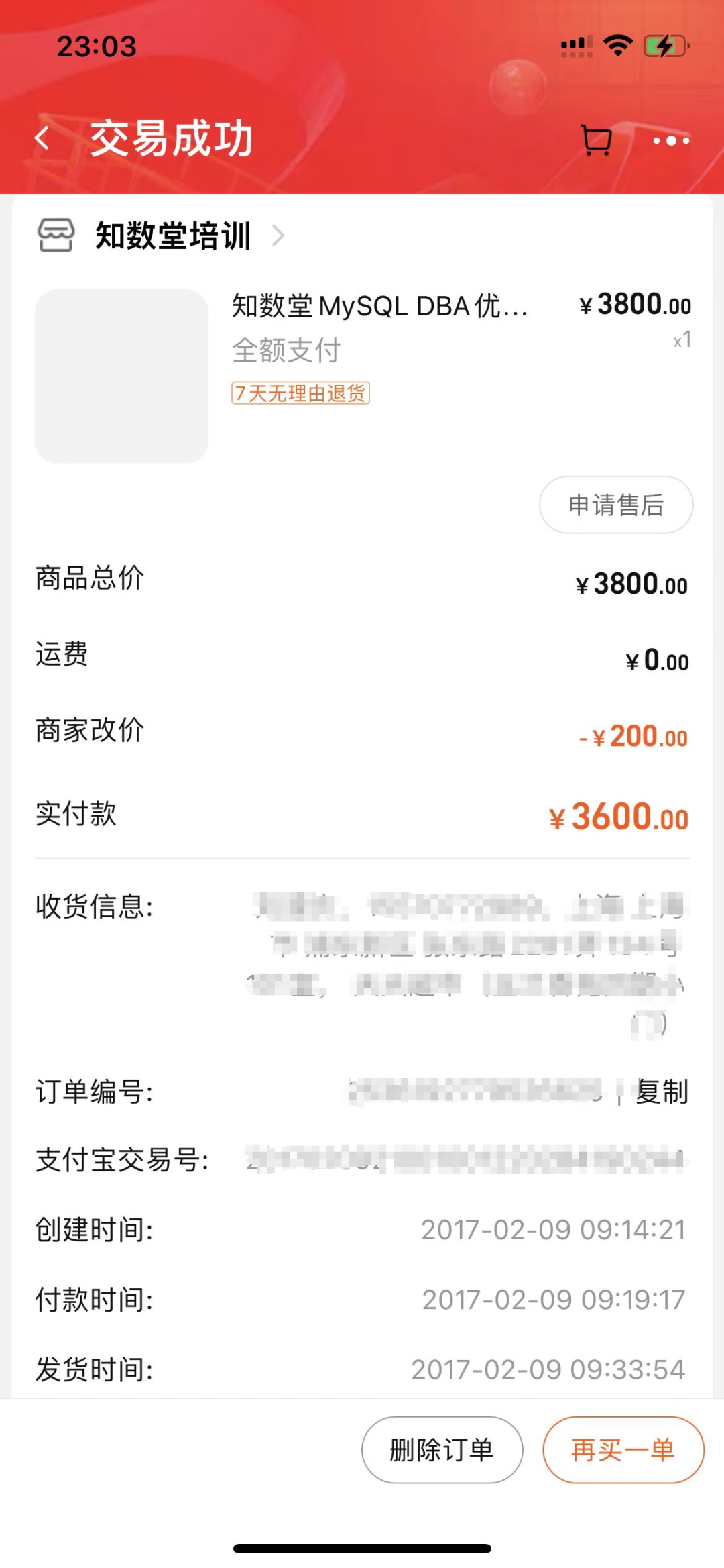 这个课程,学会了不少优化技能,比如索引、监控、日志管理等,而之前通过书籍的学习,总感觉学得不精。学完这个课程之后,工作也游刃有余了。当然,现在叶老师已经在弄其他的事情了。