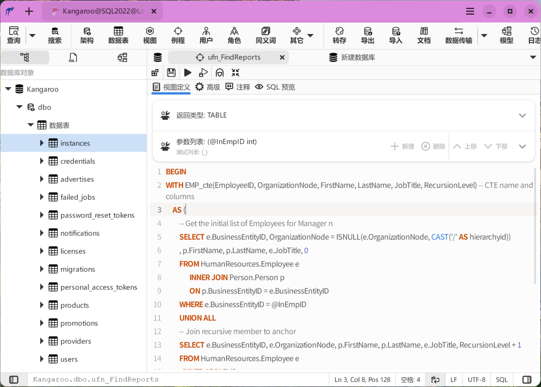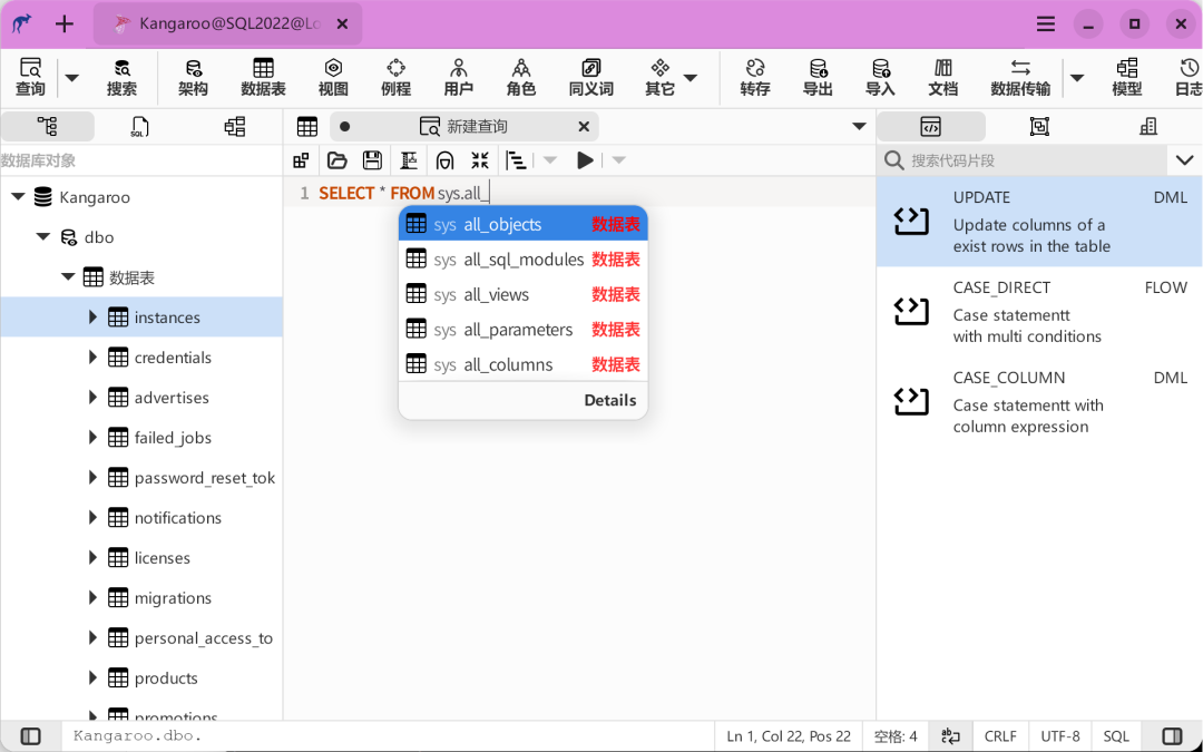 这个版本继续完善 SQL Server 支持,实现了数据库、视图、存储过程、函数对象的支持;