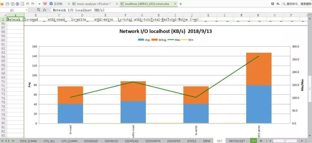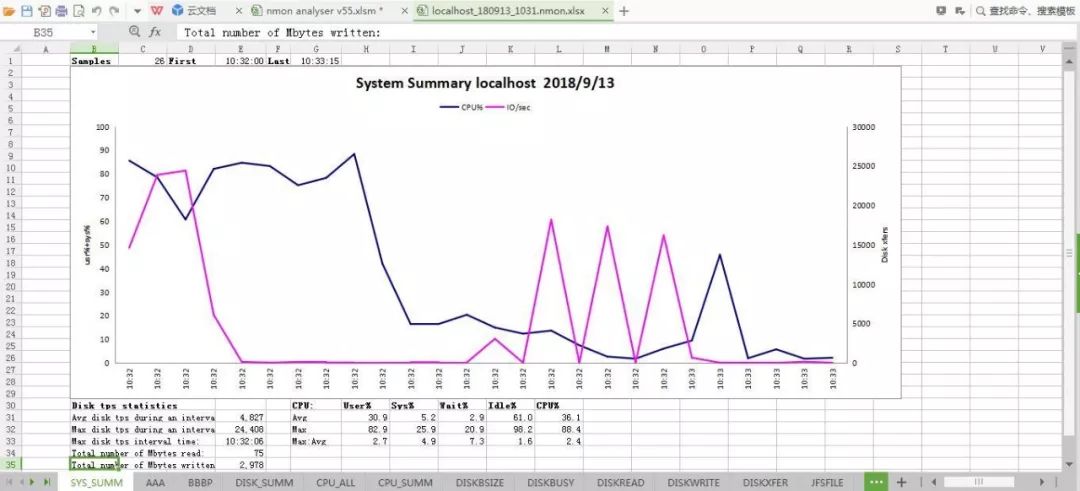 将linux服务器上的报告.nmon文件下载下来,点击上图中的Analyze nmon data按钮,选择刚刚下载下来的文件,生成可视化图表,下面先让我们饱下眼福,看下nmon analyser生成的报表:
