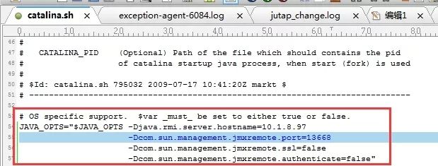 JAVA_OPTS="$JAVA_OPTS -Djava.rmi.server.hostname=10.1.8.97 -Dcom.sun.management.jmxremote.port=13668