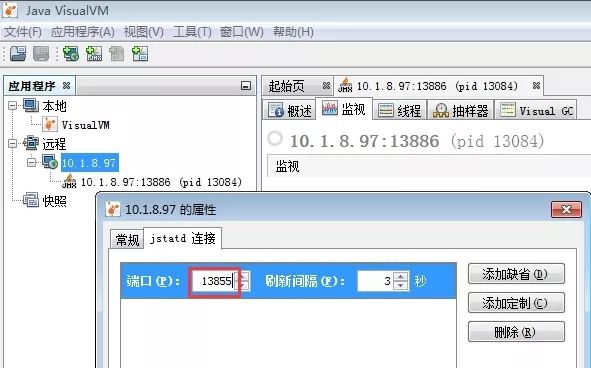 2.3.3 启动客户端的VisualVM,添加远程主机