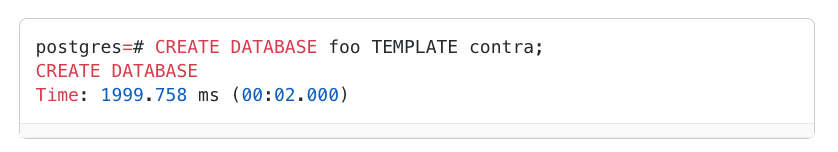 经过尝试各种方法后,我们决定结合两种方法:模板数据库(Template Databases)和挂载内存磁盘(mounting a memory disk)。这种方法使我们能够在数据库级别上隔离每个测试,而不会引入太多额外开销或复杂性。模版数据库(Template Databases)