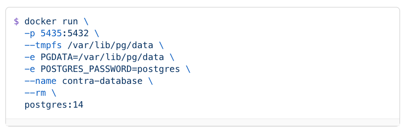 我们采用的方法是使用一个带有内存磁盘的 Docker 容器。以下是设置步骤:在上述命令中,我们正在创建一个 Docker 容器,并挂载一个内存磁盘到 var/lib/pg/data。我们还设置了 PGDATA 环境变量为 var/lib/pg/data,以确保 PostgreSQL 使用内存磁盘进行数据存储。最终结果是底层数据被存储在内存中,大大减少了创建新数据库的开销。管理测试数据库
