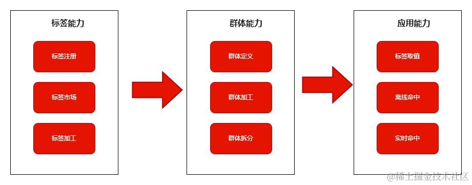 标签主要有 2大能力,在标签生产后就能为业务提供标签取值能力和标签圈群能力。