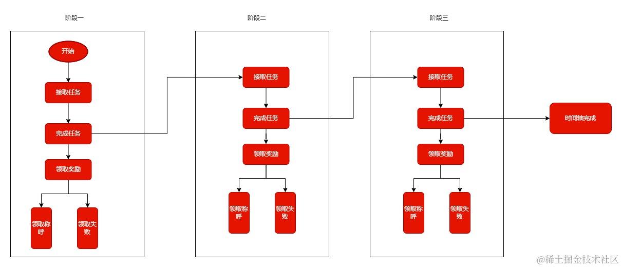 如:阶段1 小金库开通 → 阶段2 小金库支付 → 阶段3 存入小金库X元 → 阶段4 小金库持仓X元N天;在每个阶段任务完成后,均可以领取对应的奖励