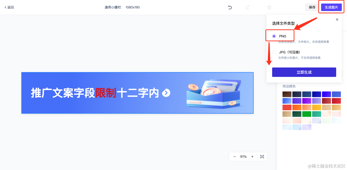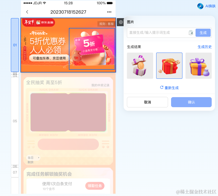 3.用户通过创建设计任务,使用平台模版和素材,在线生成图片素材并支持下载,将资源制作周期缩短至3分钟。