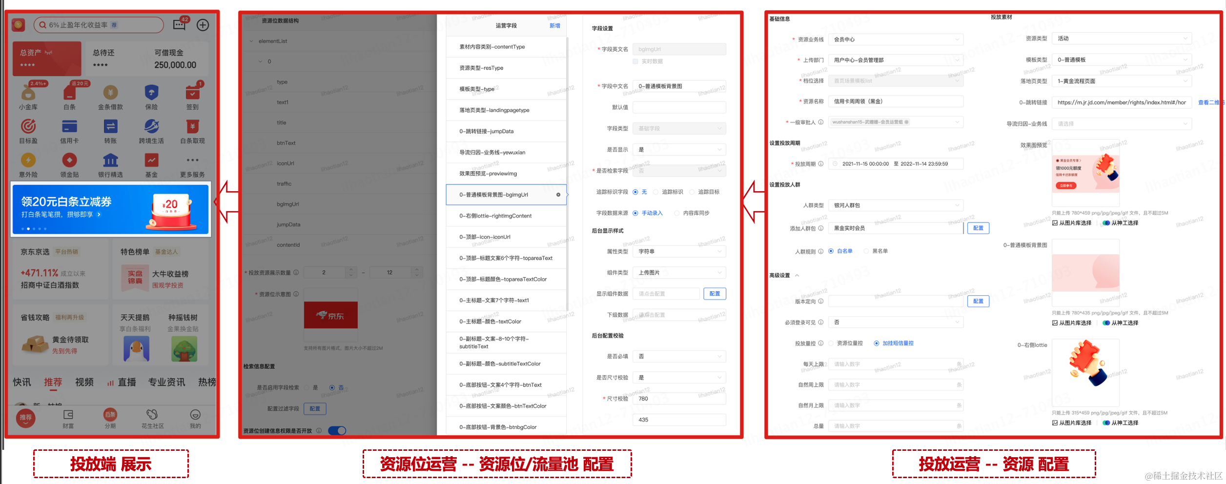 服务于流量供给方,包括了位置的定义、数据结构的定义和策略的定义。数据结构方面,可以根据位置的特征自定义数据结构。策略方面提供了多种灵活的策略选择,包括分流配置,比如走平台策略、推荐策略还是量化策略,亦或是以上几种策略的ab实验,并最终根据位置和访问用户的特性决胜出最优策略。对于强运营的场景,我们也支持将素材按照指定条件进行分发。
