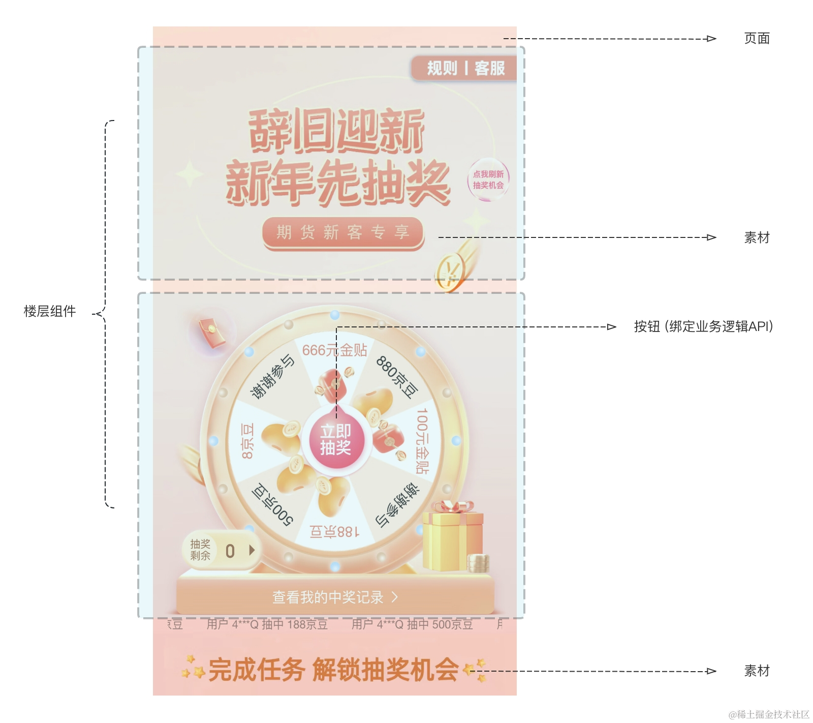 任务玩法能力是指能够有效地将运营任务传递给京东用户的能力。当用户完成某项任务时,满足奖品发放条件,会给用户发放任务奖励。它通过多样化的任务玩法和投放场景,吸引用户参与和行动。任务平台的投放能力在拉新和促活方面起着至关重要的作用,每天处理的任务量、完成的任务量和领取的奖励量的数据规模百万级别。任务投放平台在拉新和促活方面的巨大潜力和影响力,大量的用户参与任务并领取奖励,不仅可以帮助京东金融扩大用户基础,还能增加用户活跃度和忠诚度。