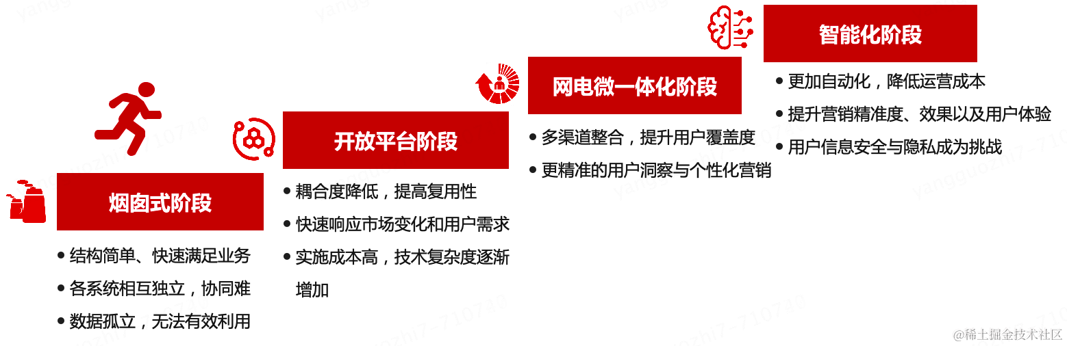 第4个阶段持续探索,利用大数据分析和人工智能技术,构建了智能化营销平台,能够更精准地分析消费者行为,预测市场趋势。通过智能化平台的应用,大幅提升了营销效率,同时为用户提供了更加个性化、精准的服务和体验。