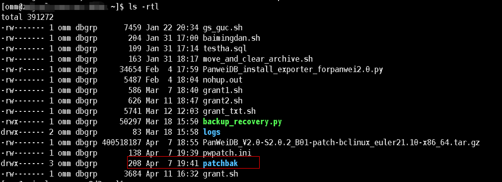 (2)将/home/omm文件夹下的patch改名或者删除掉