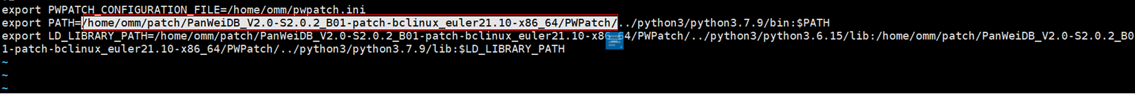 (1)磐维升级完成后,在/root/.bashrc文件下将PATH和LD_LIBRARY_PATH对应的补丁信息删除掉