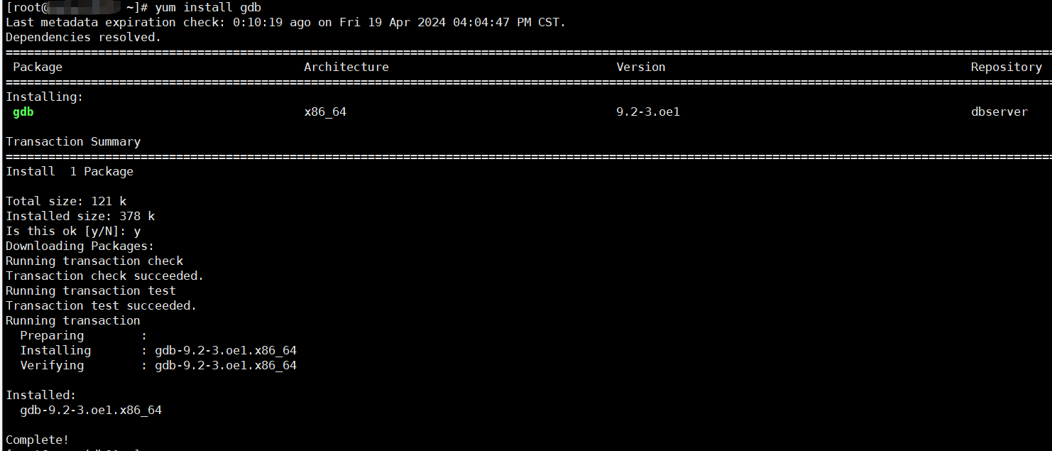 (3)进行yum的清除重配置后,再进行gdb和perf包的安装即可