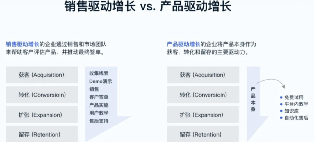 • PLG 相比传统的 SLG 核心就是抓住最终用户,通过产品的体验和价值打动用户,让用户口口相传,带来产品增量。