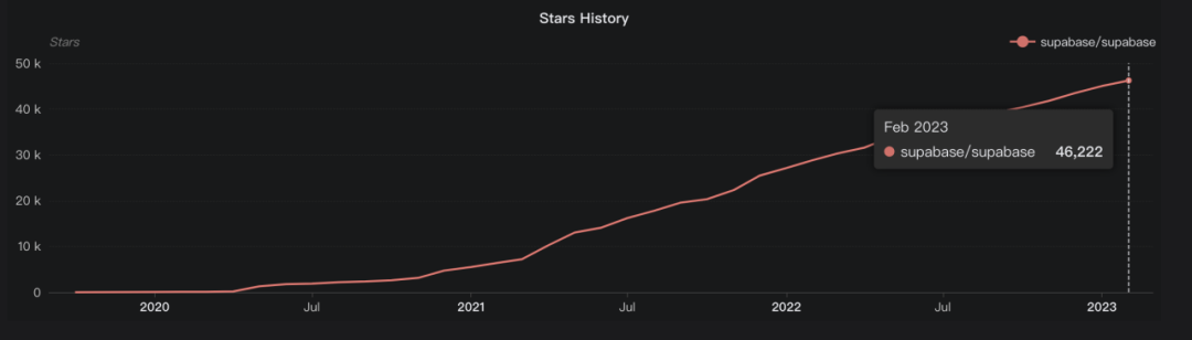 数据库为主的 BaaS 服务。20 年开始,2年多 star 数就超过 4 万。(star 数看出来在社区非常活跃,对应的潜在用户数会比较多)