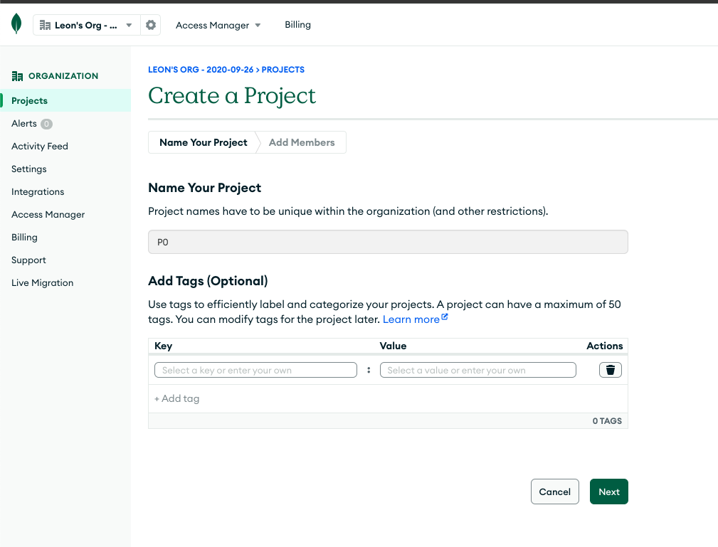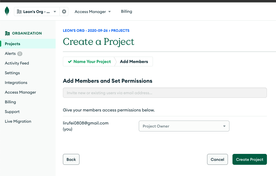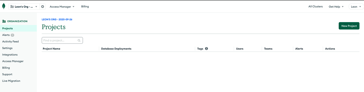 登录 Mongo DB Atlas 后,点击“New Project”先创建项目,根据引导直接下一步,然后创建项目即可,过程比较简单