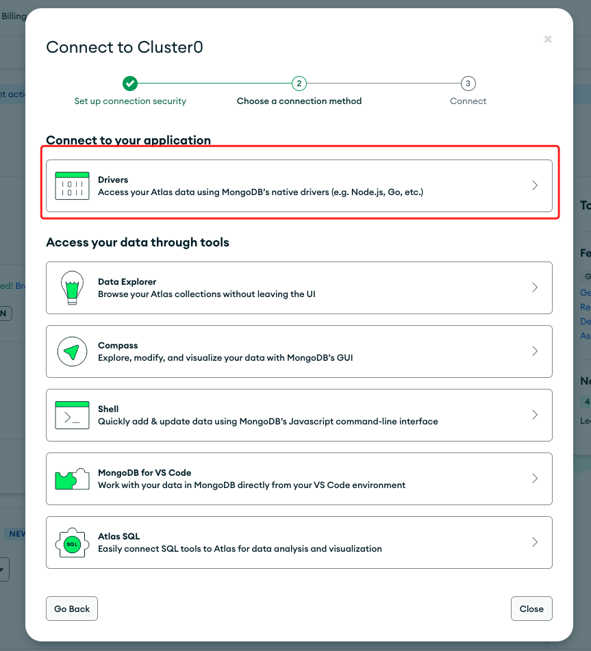 第一步选择你的应用场景,这里选择第一个“迁移数据到 MongoDB Atlas”,点击下一步