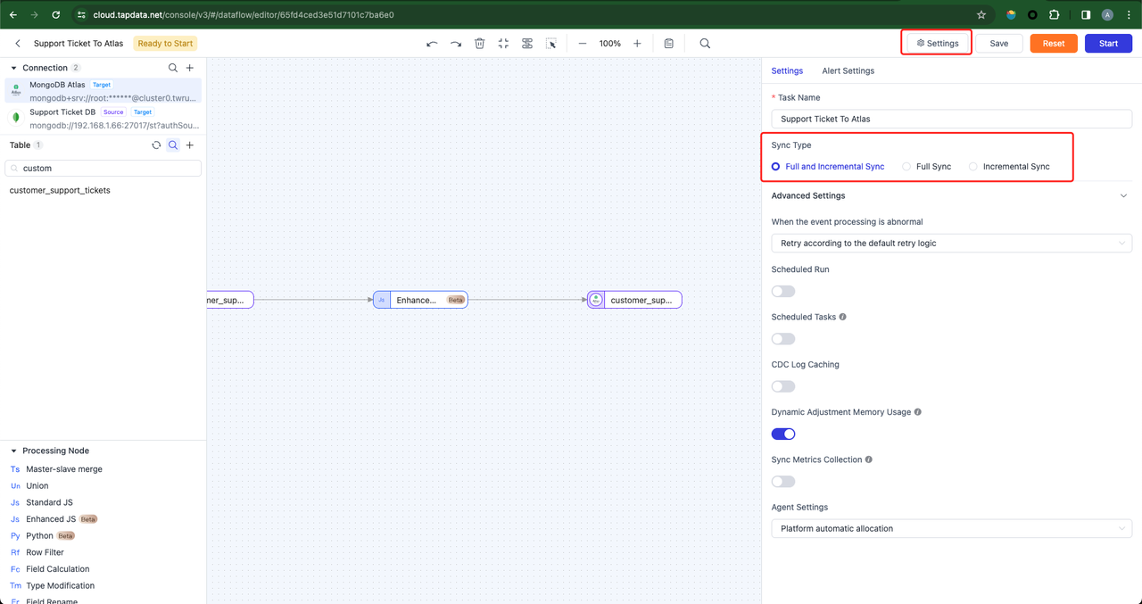 因此,随着人工智能技术的不断发展和应用,我们有信心,借助 Tapdata Cloud 和 MongoDB Atlas 的支持,企业内部工单处理将会变得更加高效、准确,为企业的发展和用户的需求提供更加稳定可靠的支持。通过 Tapdata Cloud 和 MongoDB Atlas 的无缝集成,我们为企业提供了一体化的解决方案,以提高企业工单处理的智能化水平和业务效率,为企业发展赋能。