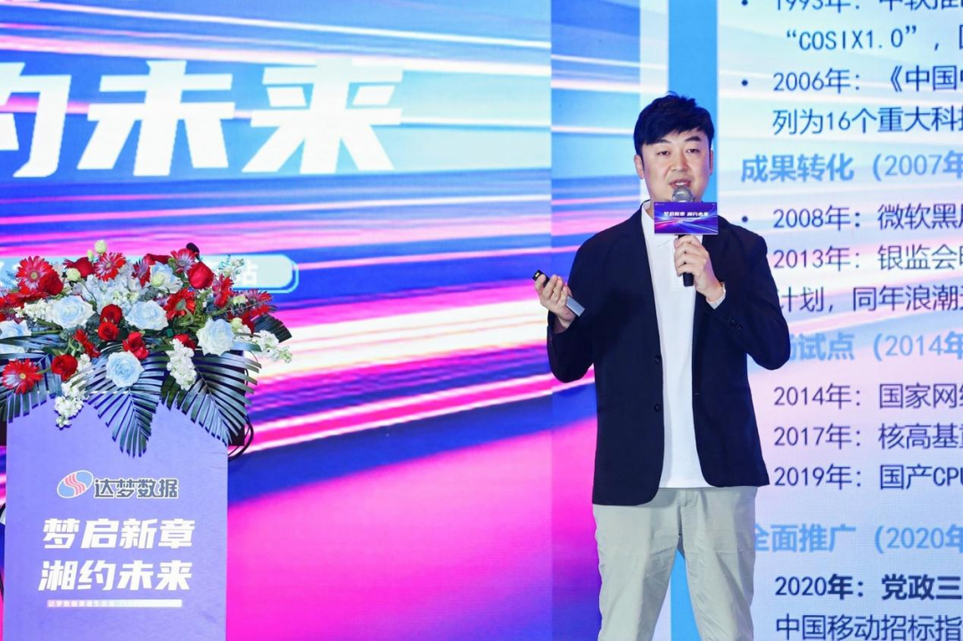 达梦华中服务中心技术总监王勇为与会嘉宾详细地介绍了达梦数据的发展历史和湖南省的市场发展成果,同时达梦数据湖南团队全员登台亮相,为后续与合作伙伴深入交流和合作搭建沟通桥梁。