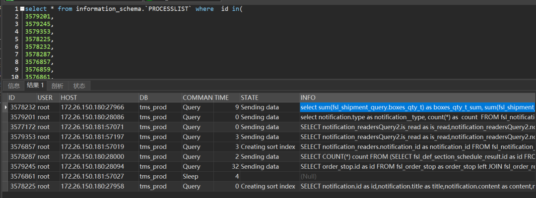 根据操作系统id可以到processlist表找到对应的会话,如下,