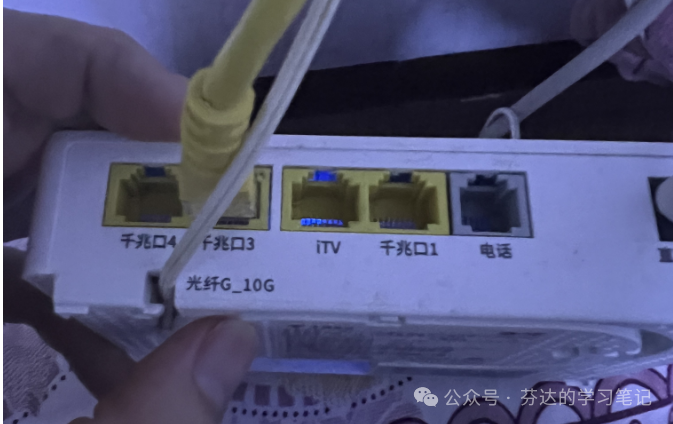 我的光猫只有千兆网口,有一些光猫可能有一个百兆网口,不要插错。