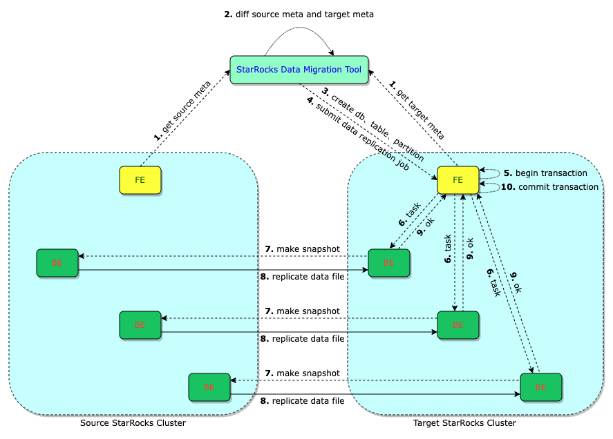 关于 StarRocks Data Migration 的具体使用方法,请参考官方文档:https://docs.starrocks.io/zh/docs/administration/data_migration_tool