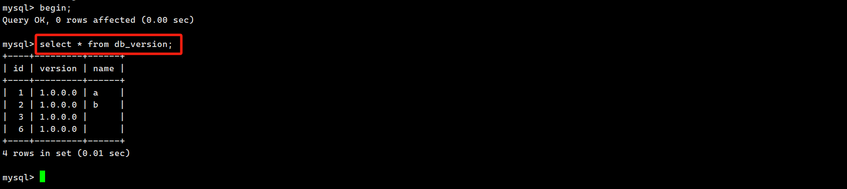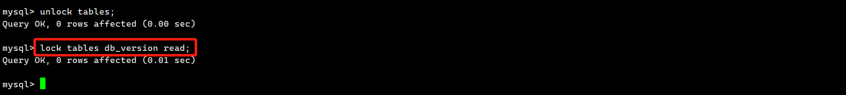 会话 1 执行:lock tables db_version read;