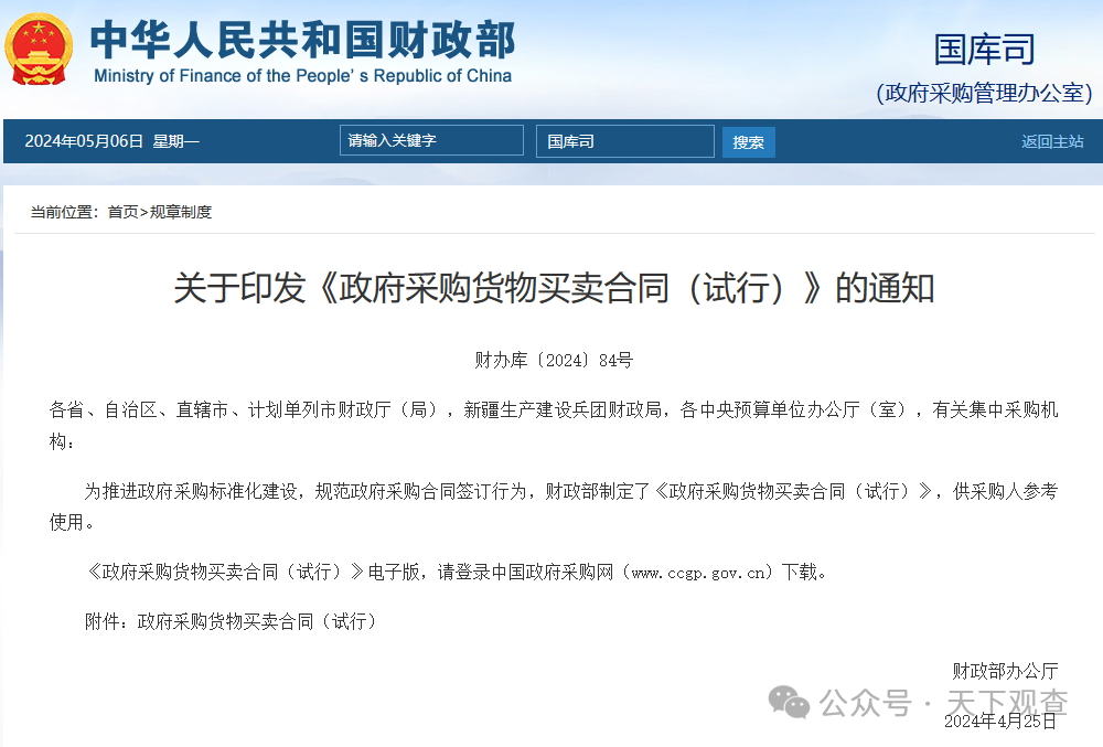 4月25日财政部办公厅发布: