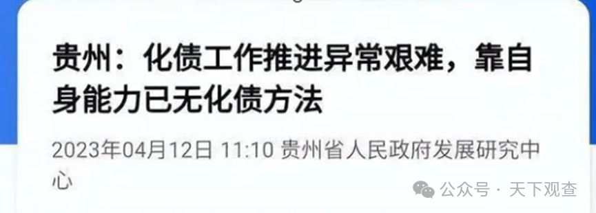 2023年,贵州GDP为20913.25亿元,在全国排名第22位。而据媒体消息2022年贵州省的负债率(61.8%)排全国第二,第一名是青海,84.3%。2023年4月贵州政府发布消息:化债工作推进困难,靠自己能力已无化债方法!