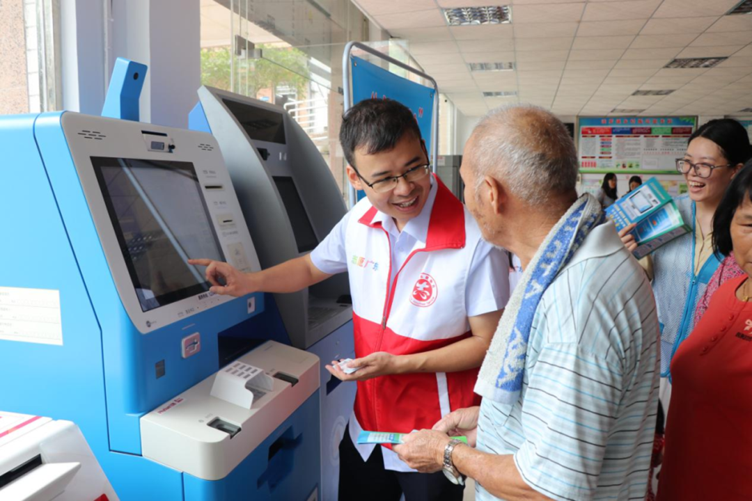 在清远市英德市波罗镇政务服务中心,60岁的居民张伙金在志愿者的指导下,通过“粤智助”政府服务自助机很快就顺利地完成了城乡居民养老保险资格认证