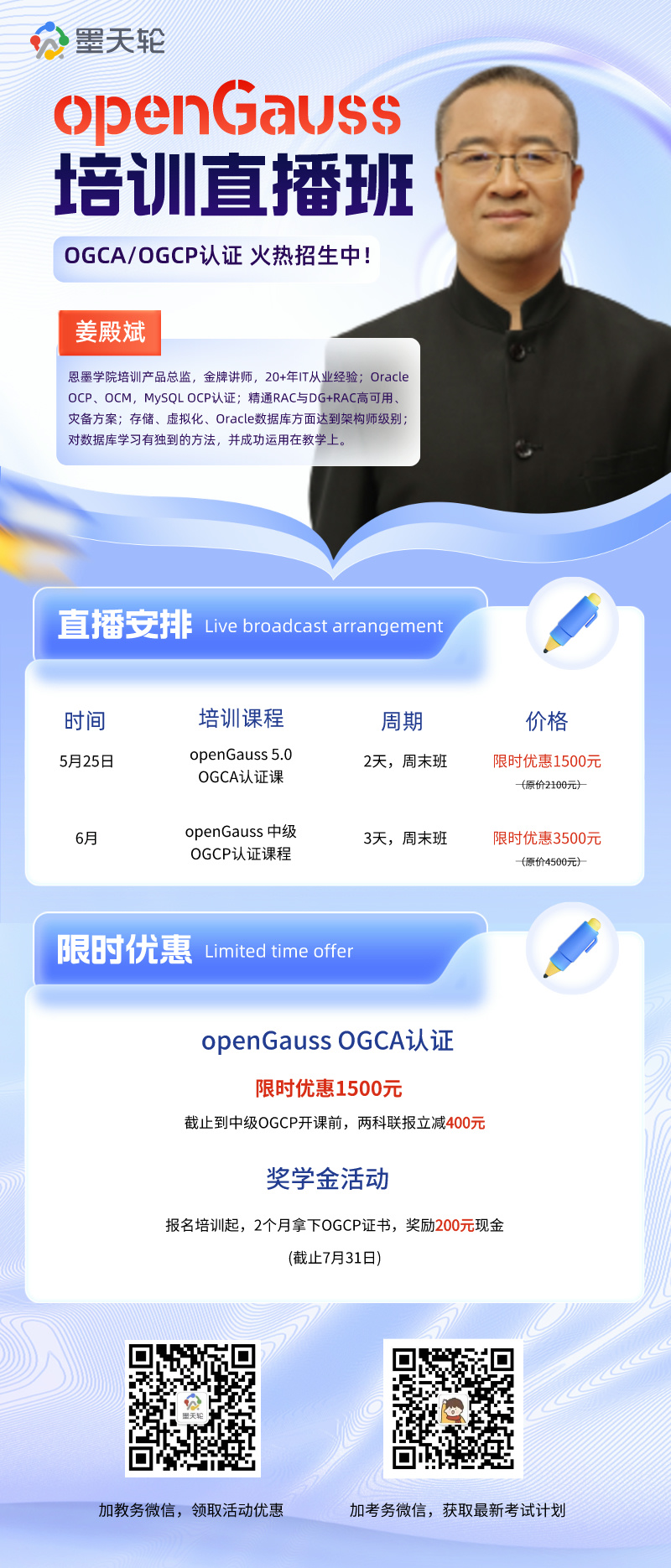 👉《openGauss OGCA认证培训直播招生中,掌握openGauss 5.0版本新技能》
